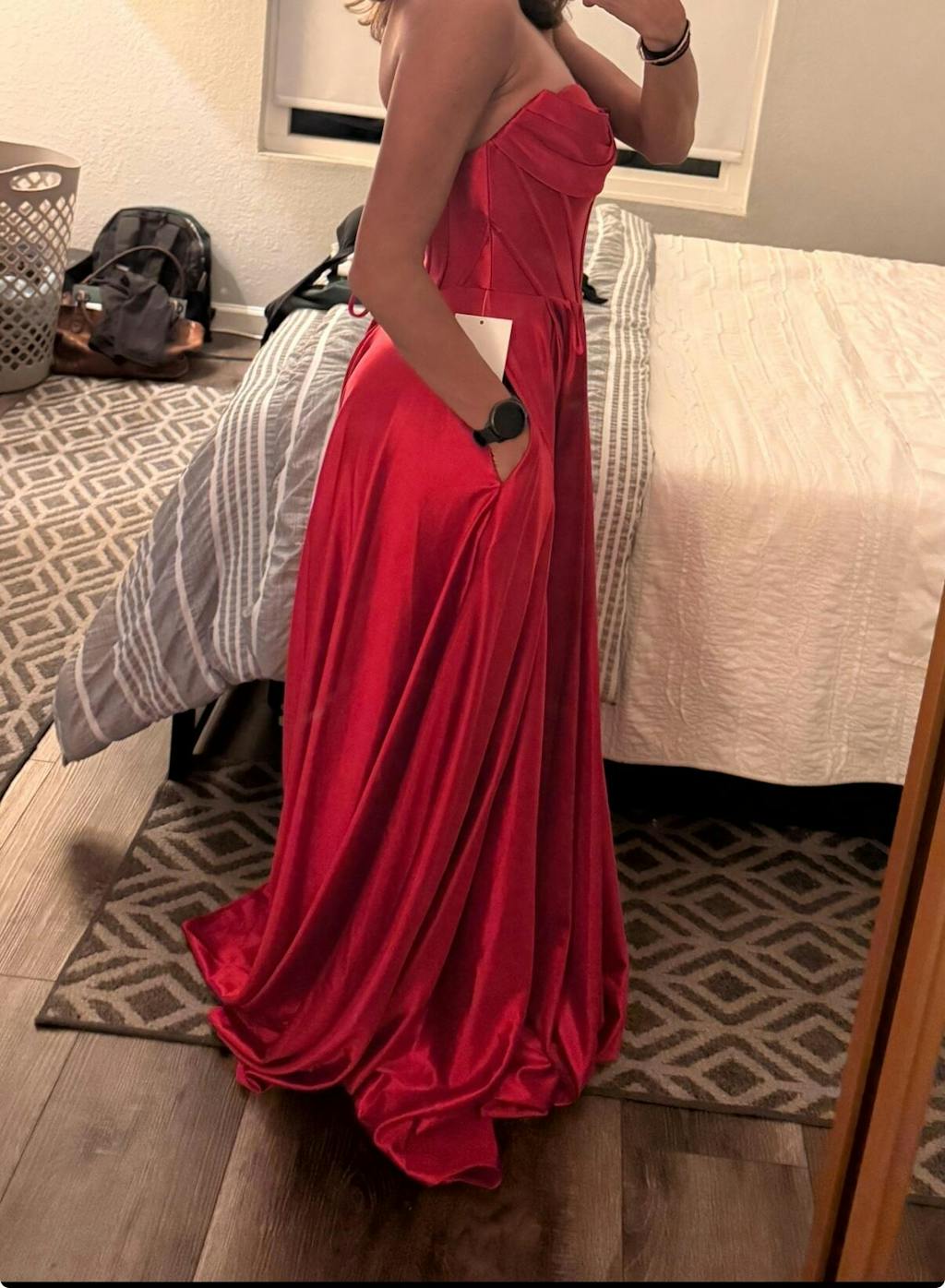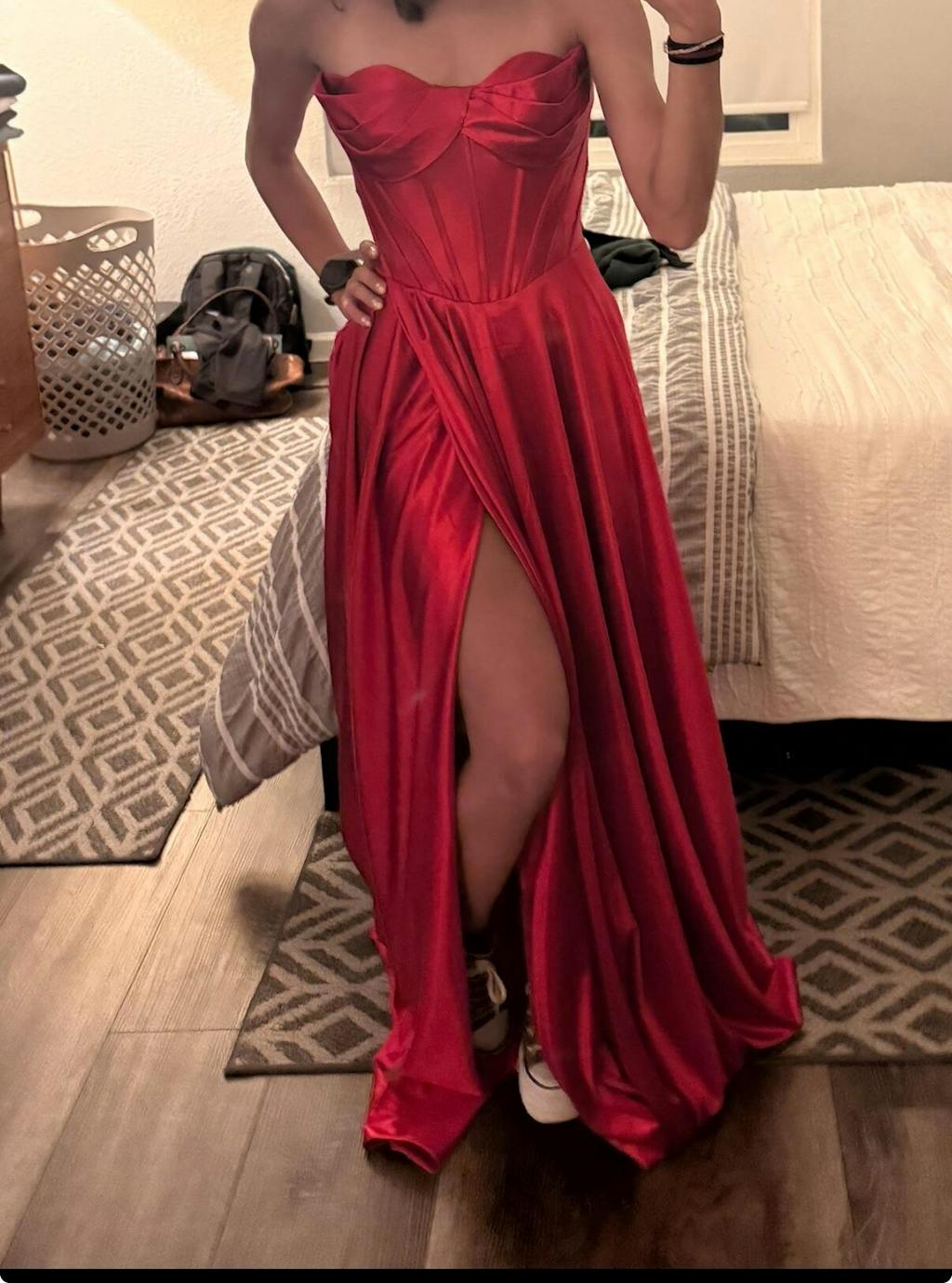 The dress got here SO quickly and it looks exactly like it did in the pictures. the quality of the material feels really nice. For reference, I am 5’3 and a size 2, and I think the dress fit true to size. If this weren’t my last prom I would 100% buy from here again