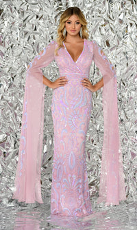 Here's a gorgeous long beaded lilac prom dress that creates a mesmerizing play of sparkle with every move. A head-to-toe stunner for prom, galas, and pageants, this lilac purple long formal dress has luminous beaded designs from the deep v-neckline to the hem. Sheer cape sleeves flow to the floor to elevate the evening look of this fabulous long evening gown, while a banded waist tops the hip-hugging long skirt. Undoubtedly the star of any show, this long beaded lilac prom dress will have you unable to take your eyes off of your reflection in the mirror.
