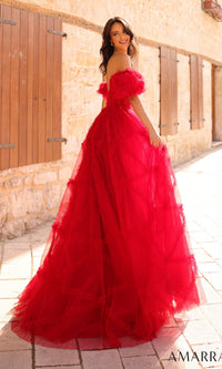 Experience sweet southern charm in this puff-sleeve long ruffled prom dress 94002 from Amarra. The sweetly sultry off-the-shoulder long sweetheart evening gown has rows and rows of beautiful ruffles from the sheer corset-style bodice to the hem of the full and fabulous a-line skirt. The ball-gown-style long formal dress has short puff sleeves that add a bit of romance for prom, military balls, and other black-tie events, while the fully-lined long skirt has a ruffled sheer-tulle overlay that flows to the floor in a flattering a-line shape to complete the design. Look and feel like the heroine from your own fairy tale when you choose this puff-sleeve long ruffled prom dress from Amarra.