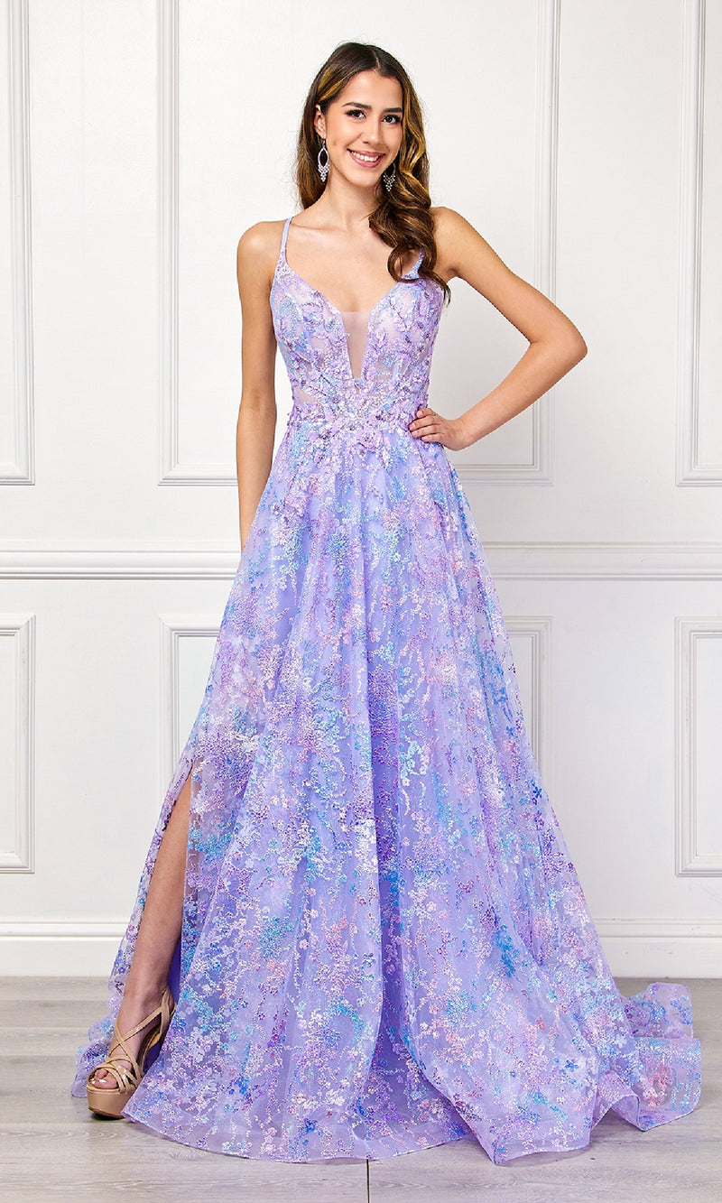 Light up the room in this lace-up long sequin a-line prom dress 4050 by Amelia Couture. With beads, sequins, and other embellishments from the deep v-neckline to the hem, this long a-line evening gown is as sparkly as it is stylish for prom, galas, and other special-occasion events. The elegant long sequin formal dress has thin shoulder straps that lace up over the open back for the best fit, while the long skirt opens in a side slit before flowing to the floor in an a-line shape. Embrace the magic of your special night when you choose this beautiful long sequin a-line prom dress by Amelia Couture.