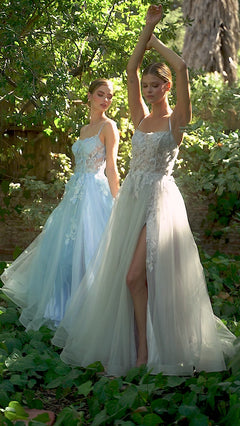 Here's a long sheer-bodice prom ball gown for the girl who loves butterflies. Beautiful organza butterflies provide the wow factor as they flow over the floral-embroidered sheer bodice of this strappy-back evening gown. The embroidery and silky butterflies continue to flow past the waist and onto the multi-layered ball-gown-style skirt that flows to the floor in a flattering a-line shape. The long tulle formal dress has thin shoulder straps that criss cross the open back before lacing up and tying into a bow for the best fit. Sure to make a fashion statement at prom, galas, and other formal events, this long sheer-bodice butterfly prom ball gown will not go unnoticed as you make beautiful memories.