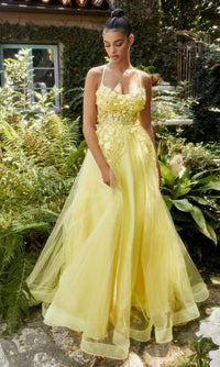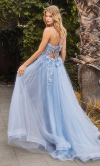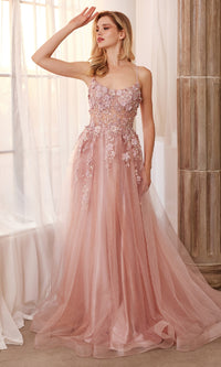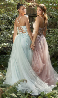 Like something from a beautiful fairy garden, this long tulle prom ball gown is sweetly feminine. So gorgeous for prom, fancy galas, and other formal events, this sheer-waist long formal dress has intricate 3-D floral embellishments that flow from the scoop neckline, past the waist, and onto the full long skirt. With a peek-a-boo sheer waist, this exciting evening gown has an open back with corset-style thin straps that lace up for the best fit, while the multi-layered long tulle skirt flows to the floor in an a-line shape. A captivating choice for your special event, this long tulle prom ball gown allows you to show a hint of skin while making a sweet fashion statement.