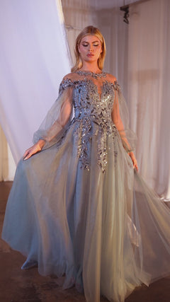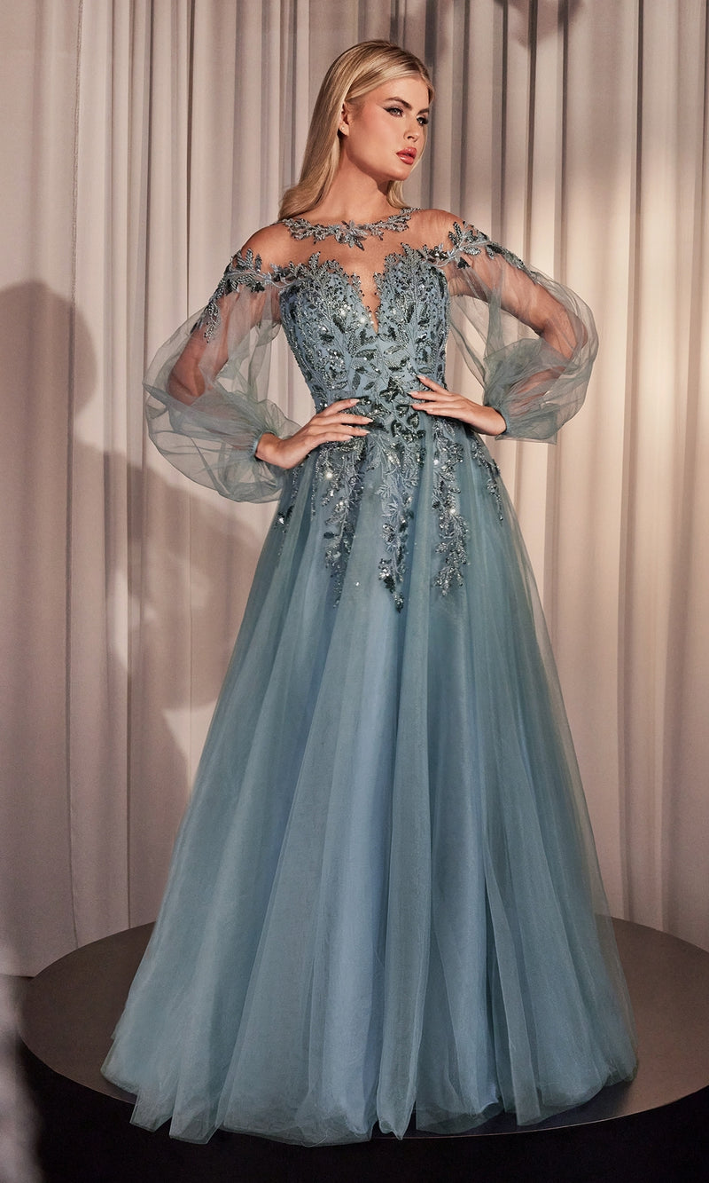 Here's a gorgeous long sleeve long formal dress A1263 that allows you to step into the night like the true star you are. Look like a million bucks on the red carpet in this sheer-bodice long sleeve evening gown that has gleaming embroidery from the high neckline to the skirt. Offered in misses and some plus sizes, this long dance dress has sheer long puff sleeves and a fully-lined long skirt with a sheer embroidered overlay that flows to the floor in an a-line shape for a flattering look at prom, galas, and other formal events. A tantalizing symphony of grace and sparkly sensuality, this long sleeve long formal dress is the ultimate show stopper.