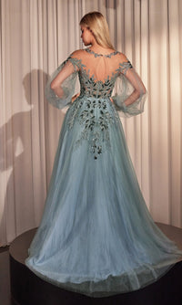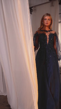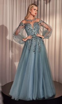 Here's a gorgeous long sleeve long formal dress A1263 that allows you to step into the night like the true star you are. Look like a million bucks on the red carpet in this sheer-bodice long sleeve evening gown that has gleaming embroidery from the high neckline to the skirt. Offered in misses and some plus sizes, this long dance dress has sheer long puff sleeves and a fully-lined long skirt with a sheer embroidered overlay that flows to the floor in an a-line shape for a flattering look at prom, galas, and other formal events. A tantalizing symphony of grace and sparkly sensuality, this long sleeve long formal dress is the ultimate show stopper.
