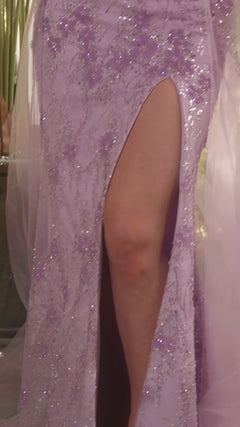 Be captivating in this lace-up long glitter-print prom dress A1382 by Andrea and Leo. With sparkly glitter-print floral designs from the structured bodice to the hem, this long formal dress looks as if it were plucked from a romantic fairy tale. The long glitter-print evening gown has a corset-style bodice that wraps around to the lace-up back, while the hip-skimming long skirt has a sheer tulle overlay that flows to the floor in an a-line shape. A thigh-high side slit adds a sexy vibe, while the train brings on the drama that makes this long glitter-print prom dress a fabulous choice for prom, galas, and other formal events.