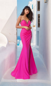 Make a beautiful fashion statement in this strapless sweetheart long prom dress 39290 from Ava Presley. With beaded trim on the sweetheart neckline, this strapless long formal dress gets a sparkly look for prom, galas, and other black-tie events. The strapless long evening gown has a curve-hugging long mermaid skirt with matching rhinestone trim on the side slit. The perfect balance of slinky style and dazzling details, this bead-trimmed strapless sweetheart long prom dress is undoubtedly the star of any show.