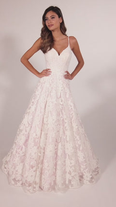 From Colette for Mon Cheri, this long???lace prom dress has a light pink lining that shows through the sparkly sequin white lace overlay.???Style CL2008 has sequins from the v-neckline to the floor, while thin shoulder straps join a horizontal band that beautifully frames the back cut-out detail. The white and pink???prom dress has a full and fabulous long skirt that flows to the floor in an a-line shape that flatters the figure. A one-of-a-kind style for your big night, this pink and white long lace prom dress is sure to wow your friends.
