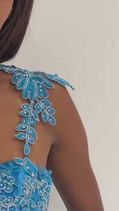| Details: | Lace Applique, Sequins, Lace-Up Back, Sheer Corset Bodice |
