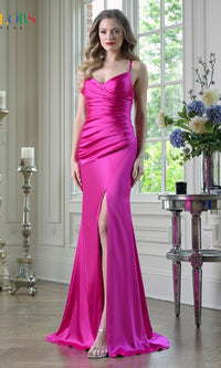 Showcase the curves in this classic long prom dress 3530 from Colors Dress. In misses and plus sizes, this beautiful long formal dress smooths over the form from the surplice v-neckline to the hem. Thin shoulder straps provide support to this gorgeous v-neck long evening gown, while thin bands lace up over the open back for the best fit at prom, galas, and other black-tie events. Offering a fitted silhouette for your exciting event, this classic long prom dress is sure to make you stand out with confidence.