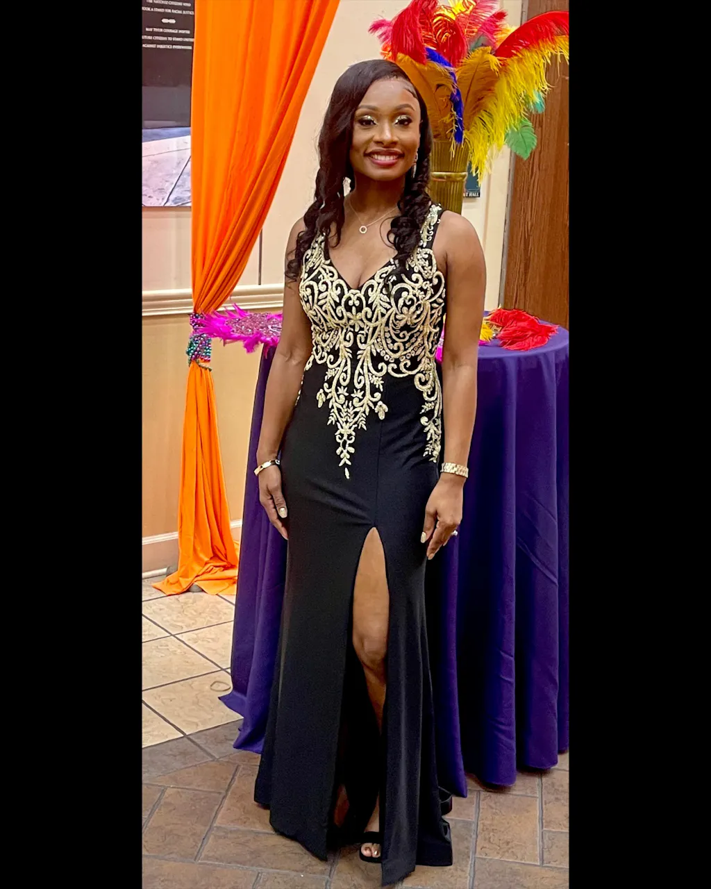 | Details: | Gold Embroidery, Horsehair Hem, Sheer Back, Side Slit, Sleeveless |