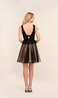 Dave and Johnny Short Black Tulle Hoco Dress 11249