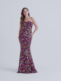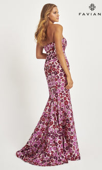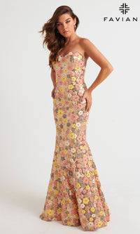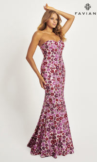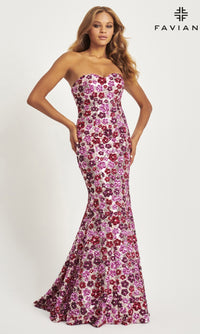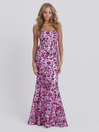 With sparkly sequin flowers, this strapless long prom dress 11036 is a no-brainer for the girl who loves to shine. The gorgeous long designer dress by Faviana shimmers from the sweetheart neckline to the floor for a head-turning look at prom, galas, and other formal events. In misses and plus sizes, this floral-sequin long formal dress smooths over the curves, while the mermaid skirt flows into a small train that follows behind every move. Make your way to the head of the style class when you choose this sequin-floral strapless long prom dress from the designers at Faviana.