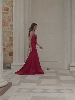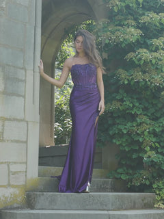 Sleek and sexy, this strapless long satin prom dress 11209 by Faviana is ready for your red-carpet debut. A real show stopper for prom, galas, and other fancy dances, this strapless long designer dress has shimmering beading on the corset-style bodice that wraps around to the lace-up open back. The strapless long satin formal dress has a long skirt with matching beads that trail down to the wide side slit, while the small train provides the drama. A tantalizing symphony of sparkle and sensuality, this strapless long satin prom dress gives your look a spectacular elevated edge.