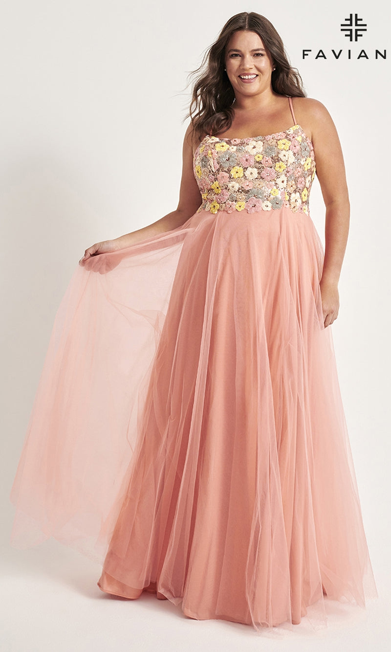 Faviana Floral Plus-Size Long Prom Dress 9557