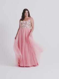From Faviana, this plus-size long prom dress 9557 is a delightful choice for your formal event. Whether you are attending prom, a fancy gala, or another black-tie event, this plus-size long designer dress is an easy-to-wear style for the woman with a full social calendar. With a floral and sequin-embellished bodice, this adorable plus-size formal dress has thin shoulder straps that provide support before criss-crossing over the open back and tying into a fully-adjustable bow. The plus-size evening gown has a fully-lined long skirt with a sheer overlay that flows to the floor in an a-line shape that finishes the design. As beautiful as it is playful, this plus-size long prom dress from Faviana is sure to garner endless compliments at your big formal.
