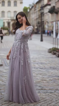 Here's a beautiful long sleeve long mauve formal dress 31717 by La Femme is a stand-out style. The beautiful long mauve designer dress features an embroidered v-neck bodice with scattered sequins and sheer three-quarter sleeves. In misses and some plus sizes, this long mauve evening gown has a fully-lined long skirt with an embellished sheer overlay that flows to the floor in an a-line shape. Catch the spotlight at prom, galas, and other formal events in this long sleeve long mauve formal dress by La Femme.