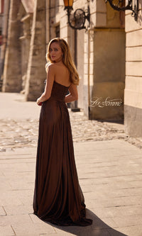 In gleaming metallic fabric, this beautiful strapless sweetheart long prom dress 33047 is a stand-out look for your big formal. From La Femme, this floor-length long designer formal dress has a twist-front empire-waist bodice that flatters the figure for prom, galas, and other black-tie events. The strapless long metallic evening gown has a full and fun a-line skirt that flows to the floor for a figure-flattering look. Offered in misses and some plus sizes, this strapless sweetheart long prom dress is sure to bring your romantic visions to life.