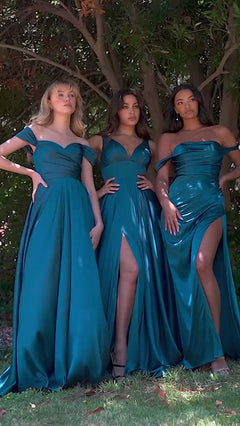 So romantic, this off-the-shoulder long prom dress is a classic style with beautiful details. So sweet for prom, military balls, and other formal events, this floor-length evening gown is crafted in soft satin fabric from the surplice v-neckline to the hem, while banded sleeves flow over the upper arms for a captivating look. A ruched waist offers a fitted look to this long formal dress, while the long skirt flows to the floor in a flattering a-line shape. Priced under $150, this budget-friendly off-the-shoulder long prom dress is sure to make a classic fashion statement without busting your bank account.
