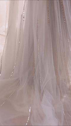 Simply gorgeous, this long silver sequin formal dress is as sophisticated as it is figure flattering. With two-tone sequins from the sweetheart neckline to the floor, this off-the-shoulder long dance dress is sure to shine as a prom dress, a wedding dress, or a fabulous frock that you would find a celebrity wearing on the red carpet. The elegant long silver evening gown has a criss-crossing bodice and a hip-hugging long skirt that has a side slit and a sheer enbellished train that flows from the waist to the floor. Look and feel like a movie star when you slip into this long silver sequin formal dress from Ladivine.