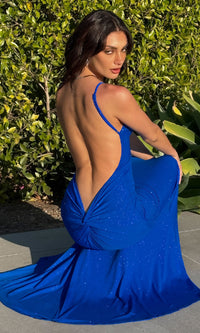 Wow is what they'll say when you arrive in this long prom dress that showcases the curves in sparkly style. In shimmering fabric from the v-neckline to the floor, this tight long formal dress is a sexy choice for prom, military balls, and other black-tie events. The sparkly evening gown has thin shoulder straps that lead to the deep v-back detail, while a twisted knot accents the booty as the hip-skimming skirt flows to the floor. Budget-priced under $100, this sparkly long prom dress lets you celebrate your very special evening without emptying your wallet.