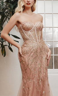 Simply gorgeous, this long pink strapless mermaid prom dress is ready for a sparkly entrance. With a shimmering glitter print and scattered sequins from the sweetheart neckline to the floor, this luxurious strapless evening gown is sure to shine for prom, military balls, and fancy galas. The exciting long pink sequin formal dress has a sheer bustier for a sexy vibe, while the hip-skimming long mermaid skirt has a sheer glitter-print overlay that flows to the floor with a flourish. Offered in misses and some plus sizes, this long pink strapless mermaid prom dress is nothing short of fabulous.
