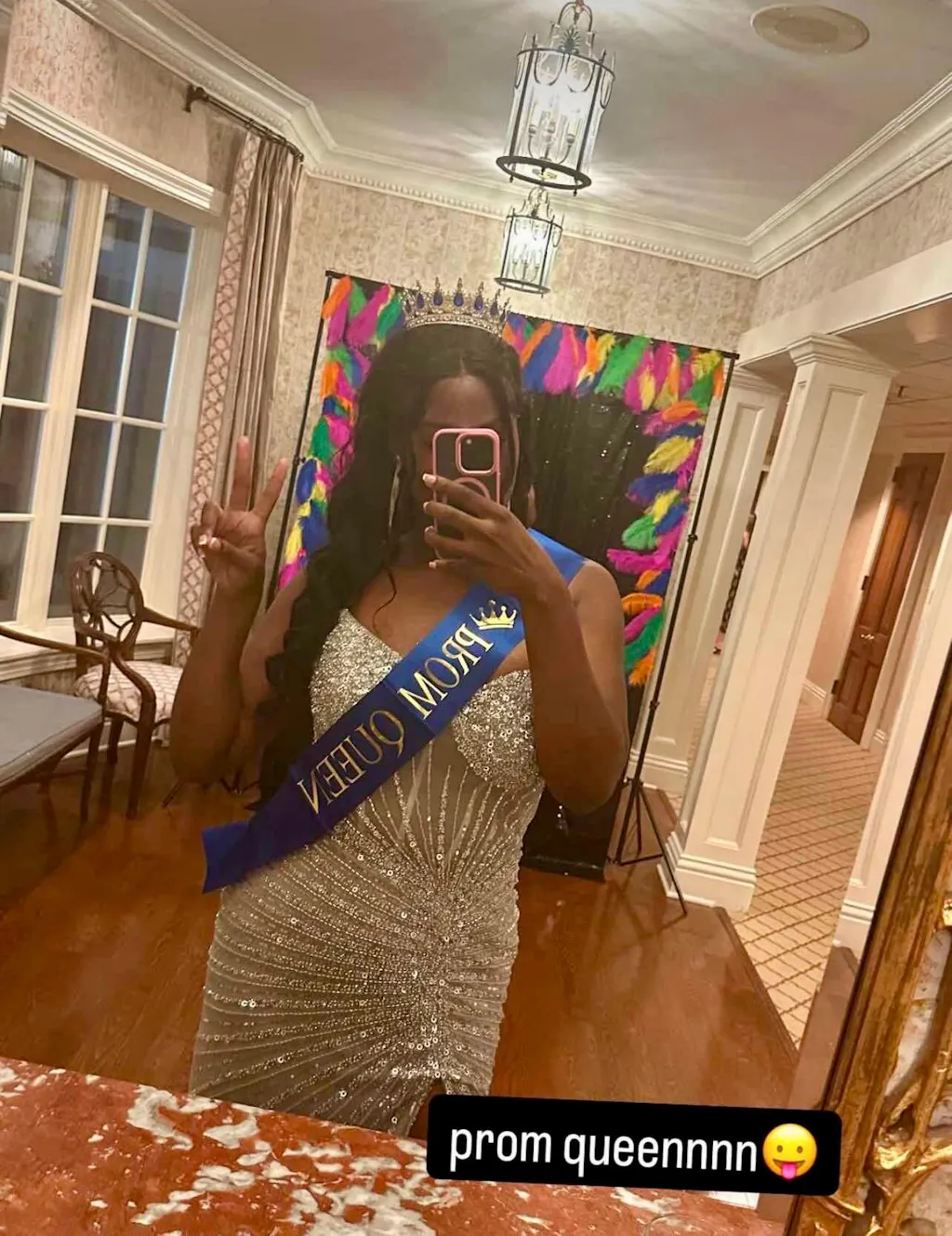 A woman wearing the Ladivine CC324 Fringed Long Beaded Prom Dress—black, off-the-shoulder, with a thigh-high slit—stands in an elegant room with teal drapes and gold-trimmed walls.