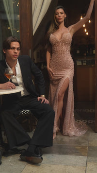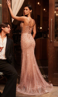 Simply sensational, this lace-up long beaded prom dress CC8801 by Ladivine is ready to shine. With pearl beading from the v-neckline to the hem, this lace-up long formal dress gets a jaw-dropping look for prom, galas, and other black-tie events. The long beaded evening gown has a figure-flattering corset that wraps around to sheer side panels and thin bands that lace up over the open back for the best fit. The long skirt is fully lined with a sheer pearl-beaded overlay that opens in a side slit before ending with an eye-catching train. A sizzling choice for your exciting night, this lace-up long beaded prom dress is one the crowd won't be able to take their eyes off of.