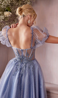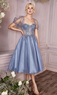 Puff-Sleeve Tea-Length Prom Dress: CD0187