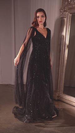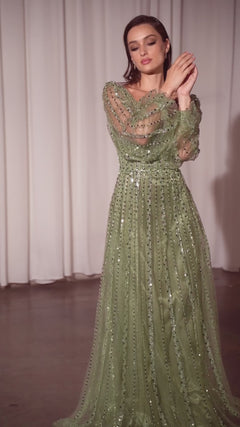 Long Sleeve Beaded Formal Dress: Ladivine CD0240
