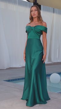 Simply beautiful, this off-the-shoulder long prom dress is ready to make your entrance a stunning one. With a sweetheart fold-over neckline that flows over the upper arms to the back, this elegant evening gown has unique bands that cross over the bodice for a fitted look. In misses and plus sizes, this long formal dress has a long a-line skirt that flows into a small train that adds a dramatic touch for prom, fancy weddings, and other black-tie events. Priced under $200, this off-the-shoulder long prom dress will give you the upscale look you desire without wrecking your bank account.