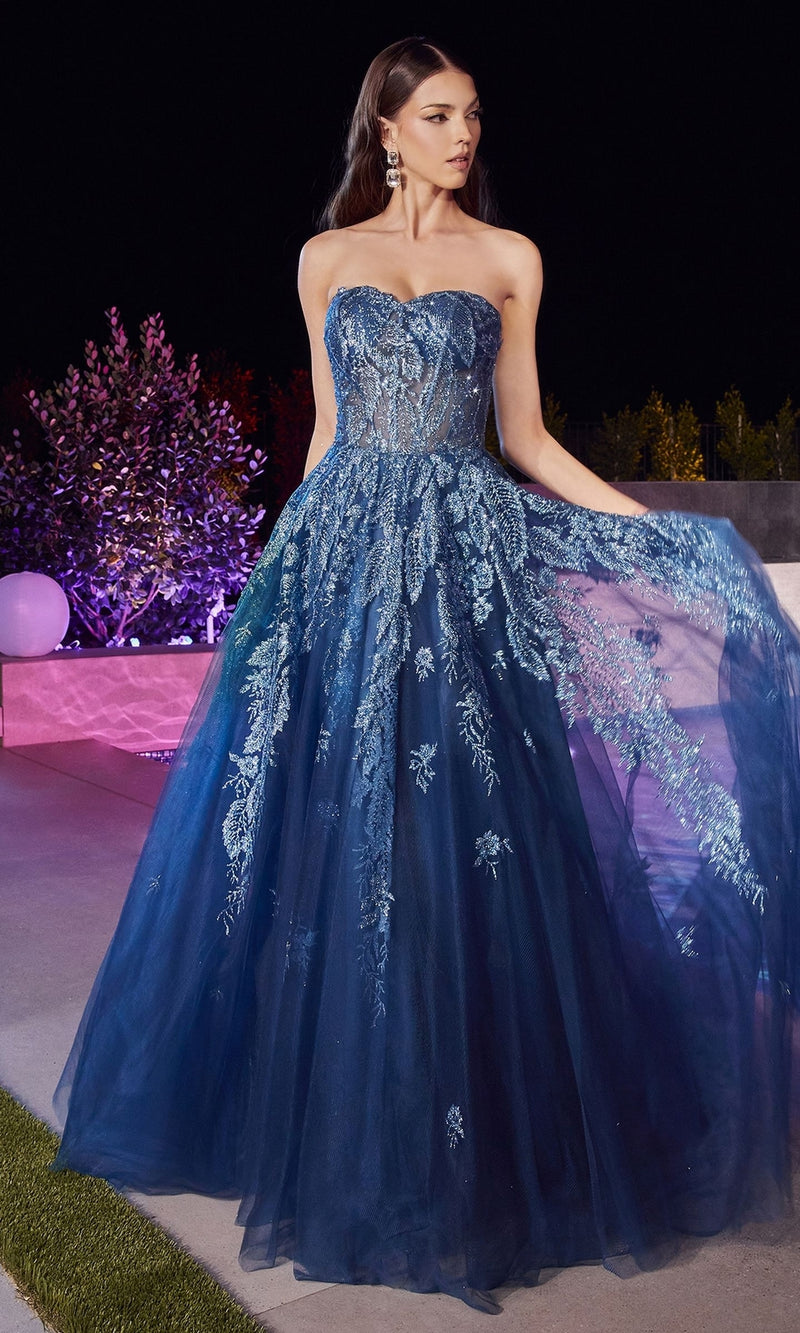 Simply stunning, this long prom ball gown shimmers and shines with every move. With sparkly beaded embroidery from the sweetheart neckline to the floor, this corset-bodice long formal dress is a dazzling choice for prom, military balls, and other black-tie events. A sheer corset-style bodice creates a sexy vibe as it laces up over the open back of this fabulous strapless evening gown, while the sparkly ball-gown-style skirt flows to the floor in a flattering a-line shape that completes the design. In misses and some plus sizes, this long prom ball gown is in stock and ready to go.