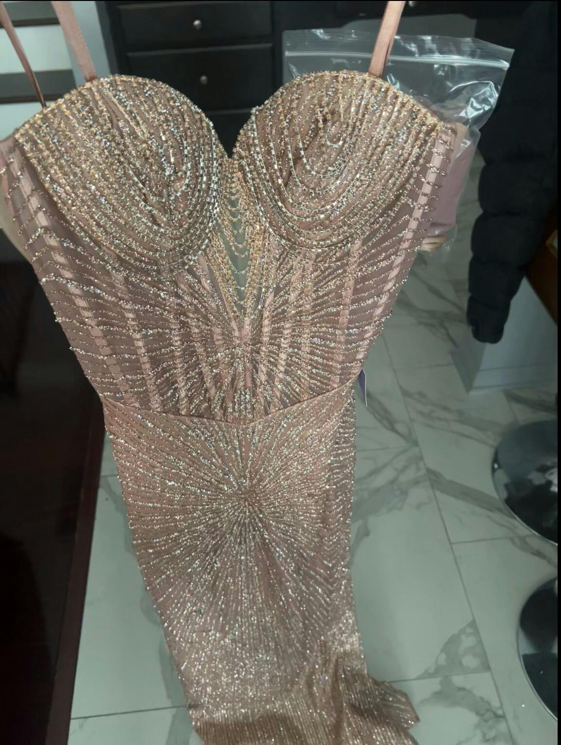 Details: Please Note: There may be a loss of glitter while wearing this dress due to the nature of the fabric.