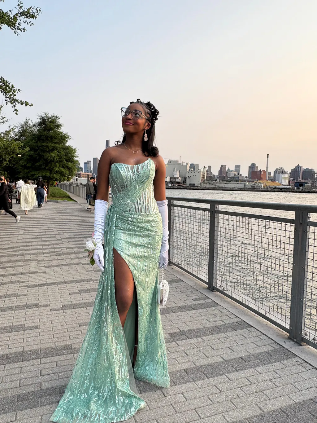 Strapless Long Glitter Prom Dress: Ladivine J872