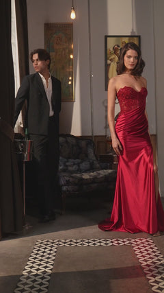 Here's a beautiful strapless sweetheart long satin prom dress KV1127 that is designed to make a statement. With a sparkly sheer embroidered corset that wraps around to the back, this strapless long satin formal dress, from Ladivine, gets just the right amount of sparkle for prom, galas, and other black-tie events. A pleated sash drapes diagonally over the waist and tops the hip-skimming long satin skirt that opens in a side slit for a sexy vibe. A small train finishes the look of this enchanting strapless sweetheart long satin prom dress that is a head-to-toe stunner that hints at seductiveness.
