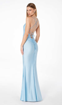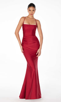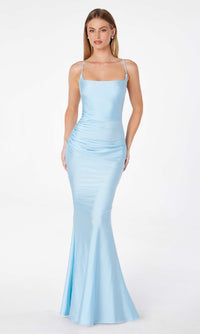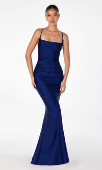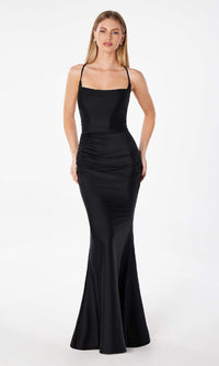 Step into a world of sophistication in this strappy open-back long prom dress by Astee. Crafted in soft jersey from the square neckline to the hem, this elegant long formal dress has thin shoulder straps that lace up over the open back for the best fit. The tight long evening gown has a hip-hugging long skirt that flows to the floor for a look of drama at prom, galas, and other formal events. Indulge in sultry allure without busting the budget when you choose this strappy open-back long prom dress that costs less than $100.