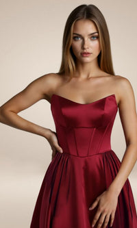 If you're looking for a simple strapless long prom dress that lets your beauty shine through, this one T612 from Amoris is the one. This strapless long formal dress has clean lines from the curved corset-style bodice to the hem for a classic look at prom, galas, and other black-tie events. In misses and some plus sizes, this strapless long formal dress has a floor-length skirt that gathers at the waist before flowing to the hem in a figure-flattering a-line shape. Priced under $150, this classy strapless long a-line prom dress is sure to leave an indelible mark on hearts and memories.