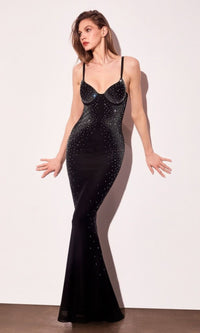 Sleek and sparkly, this classic long bodycon beaded prom dress by Astee is ready to shine. With shimmering beads from the sweetheart neckline to the hem, this long evening gown is sure to catch the spotlight at prom, galas, and other black-tie events. The long beaded formal dress has thin shoulder straps that adjust for the best fit, while the long mermaid skirt smooths over the hips before ending at the floor. Surprisingly affordable at under $100, this gorgeous long bodycon beaded prom dress is sure to embrace the magic of your special night without emptying your wallet.