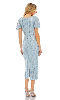 Flutter sleeve fitted v-neck midi beaded fitted party dress