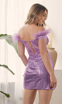 So impressive, this short sequin mini homecoming dress is uniquely beautiful for your very special evening. With a sheer corset and plunging v-neckline, this sequin cocktail dress gets a romantic upgrade with feathered banded sleeves that wrap around to the lace-up corset detail. The sequin hoco dress features a faux-wrap short sequin skirt that includes side ruching and a fancy tulip-style hemline that shows off a lace detail. Offered in misses and extended sizes, this short sequin mini homecoming dress is a bold choice for homecoming, sweet-16 parties, and other semi-formal events.