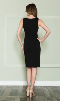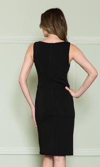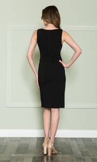 Upscale and simple, this knee-length semi-formal career dress is just what the busy woman needs. So chic for the office, this short work dress is also great for after-work dinner parties, wedding receptions, and other casual to semi-formal events. With a high neckline, this modest casual party dress flatters the figure down to the hem of the knee-length skirt. In misses and some plus sizes, this simple knee-length career dress is great for the woman on the go.