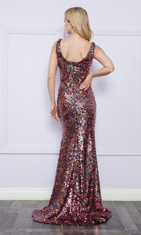 Catch the spotlight in this long sequin prom dress from Poly USA. Surprisingly affordable, at under $200, this long sequin evening gown is an upscale design from the scoop neckline to the floor. Offered in misses and some plus sizes, this long sequin formal dress has supportive shoulder straps that lead to the matching scoop back, while the hip-hugging long skirt opens in a side slit to complete the look. A radiant choice for prom, galas, and other formal events, this scoop-neck long sequin prom dress is sure to shine without breaking the bank.
