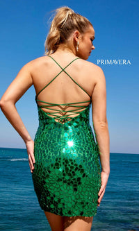 Here's a backless short party dress that shines like no other. With unique broken-glass sequins, this v-neck mini dance dress is sure to catch the spotlight at homecoming, nightclubs, and other semi-formal events. The short sequin cocktail dress includes thin shoulder straps that lace up over the open back for the best fit, while the short skirt skims the hips for a fitted look. Turn heads wherever you may go in this gorgeous broken-glass short party dress.