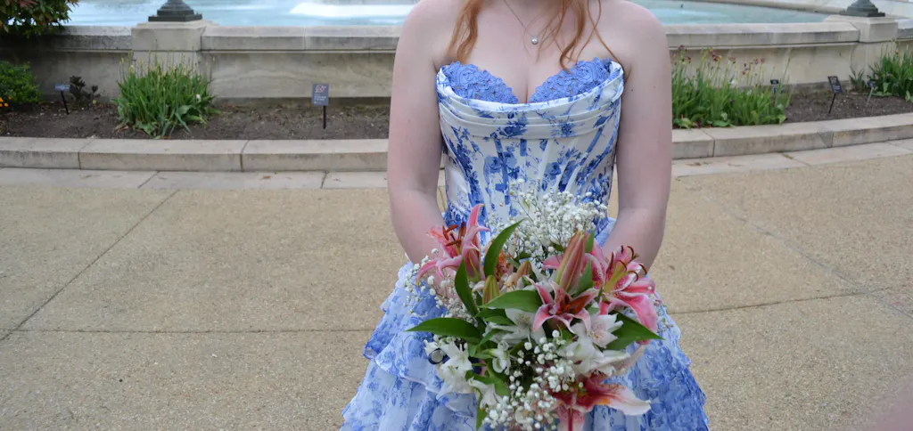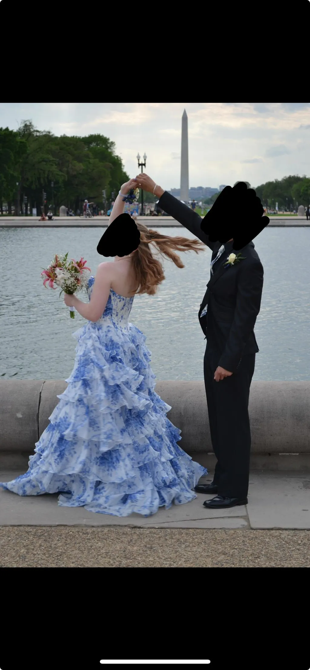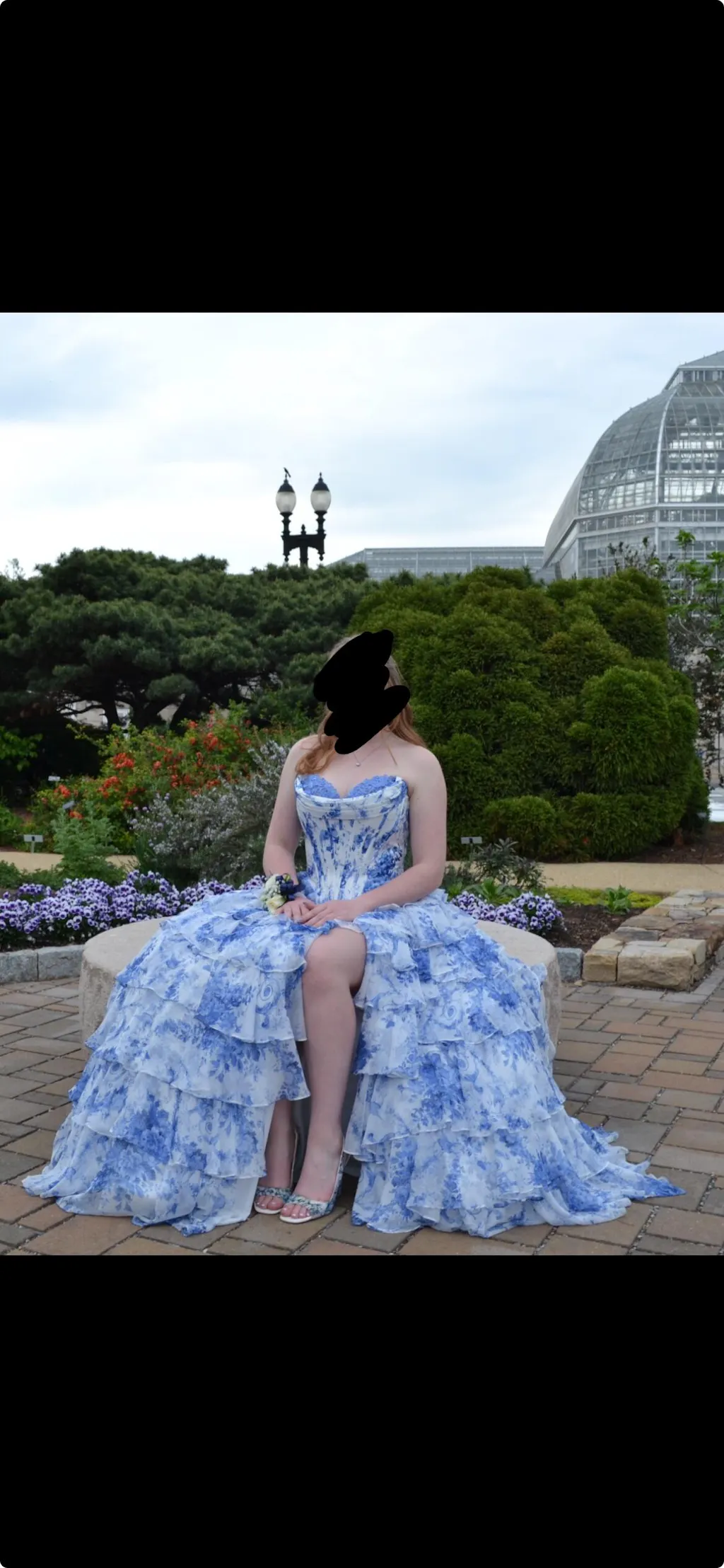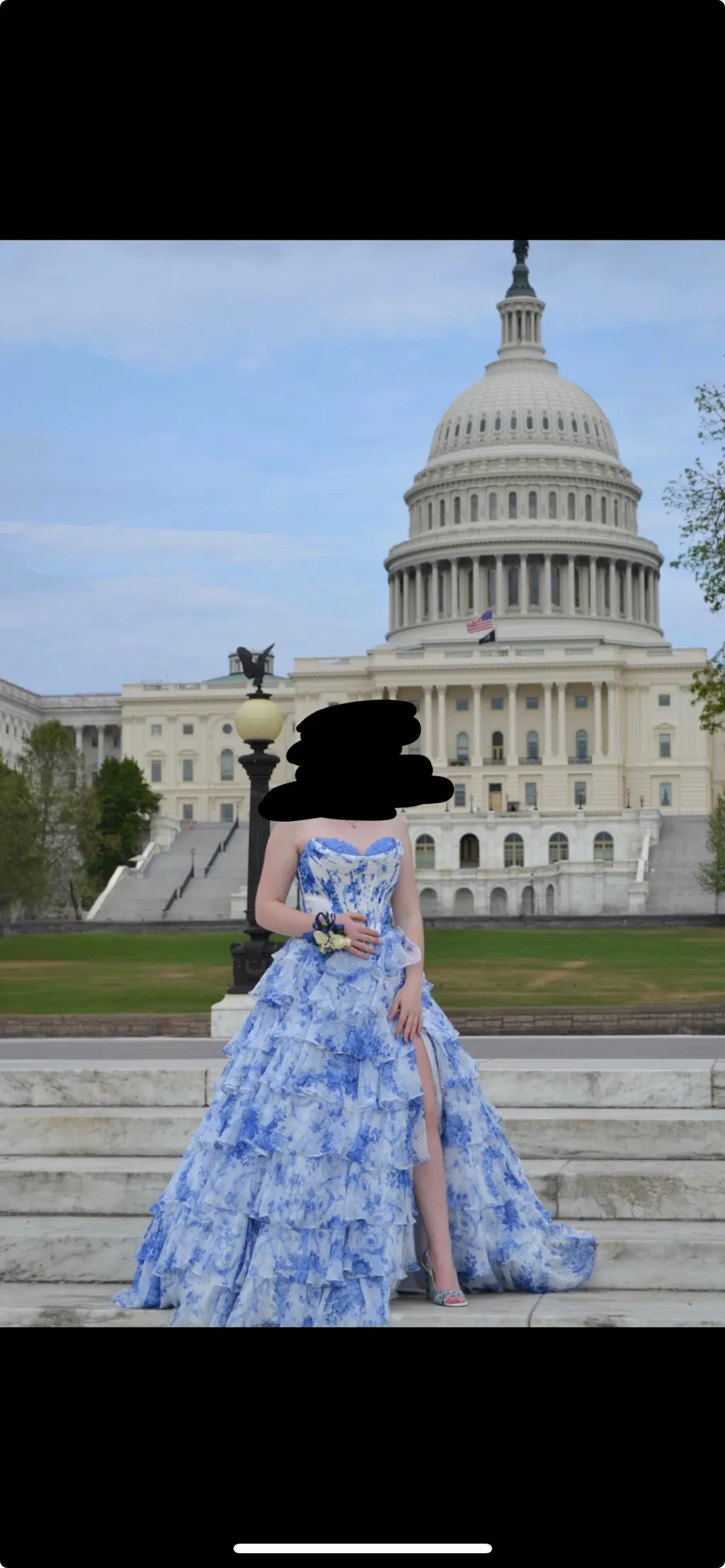 Blue Floral Prom Ball Gown: PromGirl Exclusive 250123