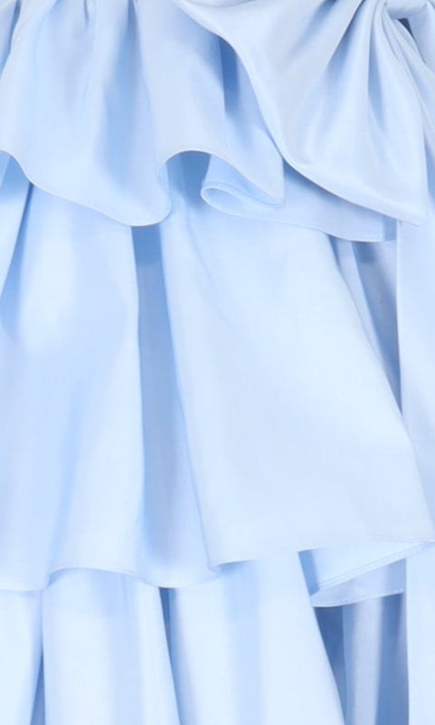 | Details: | Fit and Flare, Ruffled Tiered A-Line Skirt, Structured Bodice, Bow |
