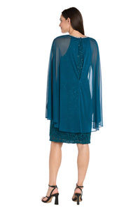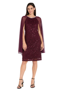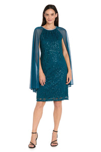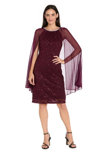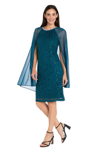 Command the spotlight in this knee-length sequin-lace party dress by R&M Richards. Featuring a delicate sheer cape that drapes effortlessly over the shoulders, this short cocktail dress gets subtle coverage for weddings, cocktail parties, and other semi-formal events. The eye-catching short semi-formal dress is crafted in sparkly sequin lace from the contrasting neckline to the hem of the fully-lined knee-length skirt. Make a fashion statement with timeless beauty and modern flair when you arrive in this knee-length sequin-lace party dress by R&M Richards.