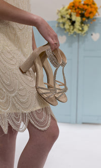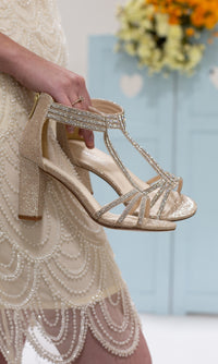 Champagne rhinestone high heels for prom with a 2.75 inch heel.