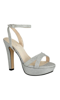 Silver 4 inch high heel prom shoes by Touch Ups.