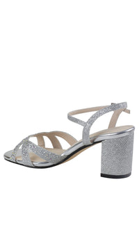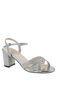 In these silver shimmer prom shoes, prepare to dazzle on your special night. Designed with a trendy open toe, these low-heel prom shoes feature a twist-style toe strap adorned with shimmering crystal embellishments. The comfortable ankle strap ensures a secure fit that allows you to move with confidence. With 2¼-inch block heels, these open-toe prom shoes are balanced, chic, and comfortable. Ideal for those who seek both glamour and ease, these silver shoes for prom are the perfect finishing touch to your ensemble.
