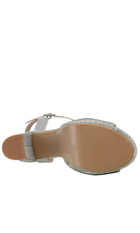Silver high heel prom shoes with a 4 inch block heel. Lynx by Touch Ups is an open toe prom shoe with an ankle strap.
