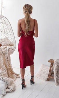 Sleek and sexy, this midi-length slip party dress, dubbed Aspen, is a hot pick of the season. So sexy from the slight scoop neckline to the midi hem, this semi-formal sheath dress slides over the curves to make an up-to-the-minute fashion statement. Adjustable spaghetti straps attach to the low back of this knee-length cocktail dress to finish the design. As sexy as it is figure flattering, this beautiful midi-length slip party dress is offered in misses and extended sizes to help you look and feel amazing at homecoming, wedding receptions, and other semi-formal events.